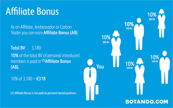 Cualquier persona (individuos y empresas) pueden incorporarse al sistema mediante el registro de Botanoo.com através de la página replica de otro Miembro. Decide invertir en créditos de carbono, y se beneficia a nivel economico. Personas de cualquier parte del mundo pueden comprar paquetes de negocios de 400 euros o 1.200 euros (o múltiplos) de Botanoo.com.